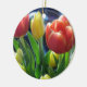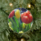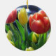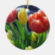 Ornamento de los tulipanes. El tulipán holandés rojo y amarillo florece en el ornamento caliente de la foto de la luz del sol de la primavera. ¡Este ornamento del regalo de la flor es completamente adaptable! ¡Añada y personalice con sus textos e imágenes! ¡Un regalo floral hermoso para el amante de la flor!