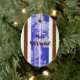 Haleiwa es la primera parada en un viaje de la orilla del norte de Oahu, Hawaii. Esta pequeña aldea de la resaca es casera a algunos de los puntos más grandes de la resaca del mundo. Nuestro diseño es evocador de una tabla hawaiana del vintage a partir de los comienzos de practicar surf. Combinamos la madera del koa y añadimos un panel pintado apenado de las flores del hibisco. ¡Para el navidad, nuestro saludo es "Mele Kalikimaka", pero estos ornamentos hacen la gran ronda del año de los regalos, lo modifican para requisitos particulares con su propio mensaje! Estos diseños vienen varios colorways.