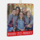H Un elegante y moderno adorno de festividades fotográficas personalizadas con "Merry", "Year" y "Bright" en la parte delantera y tu apellido y año establecido en la parte posterior. Tu foto se verá magnífica en este sencillo diseño de color audaz. Recortar tus fotos favoritas para cuadrar y reemplazarlas aquí (ingl) Fotos de muestra de https://www.pexels.com/@vicki-yde-411568/ (ingl)