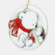 Un oso blanco adorable y su pequeño amigo adorable decoran este adorno navideño.