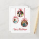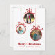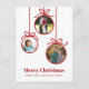 Una simple y moderna tarjeta de fotos navideña adornada con adornos navideños. Reemplace las fotos de la familia con las suyas y cambie el nombre y el saludo a personalizar. Crédito de la foto: Photography © Storytree Studios, Stanford, CA