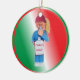 Este artículo está decorado de un lado con la imagen de una entrenadora femenina y del otro con Santa Claus. Se puede personalizar con un nombre.