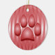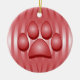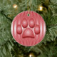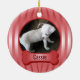 Un hermoso ornamento de fotos de Navidades de hueso y pata de perro rojo. Este adorno está a rayas y es un lugar para que puedas poner una foto de tu adorable mascota durante las vacaciones.