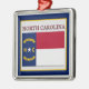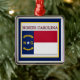 Un gráfico diseño de la bandera del estado de Carolina del Norte en un adorno de Navidad.