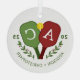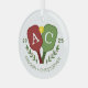 Ornamento de Navidad Personalizado para Parejas de Pollo. Conmemorar su año de pickleball jugando con un adorable adorno festivo. Personalice con una inicial para cada persona dentro de una paleta, así como agregue sus nombres y año. Se muestra en una paleta clásica roja y verde con un pickleball amarillo estándar, pero TODOS LOS COLORES SON EDITABLES POR TI. Se pueden elegir colores nuevos para las palas, el pickleball, el holly + bayas y el texto. © Kimbellished, LLC