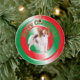 Este adorno navideño está decorado por un lado con la imagen de un Papilón y por el otro con una vela y una corona de Navidades. La imagen del perro puede ser reemplazada por una imagen propia.