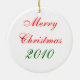 Él es un hombre de nieve delante. La espalda dice Feliz Navidad 2010. Un maravilloso adorno de conservas para cada año.