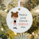 Un adorable bailarín de grifo adornado con piel clara y pelo castaño en dos bollos lleva un leotardo negro, unas medias blancas y una falda rosa y un par de zapatos de baile. Las palabras Peace Love Dance con un corazón rosado. Personalízalo con el nombre de una bailarina y personalizar con el año de este lindo regalo para una bailarina. Pintura © Chrissy H. Studios, LLC. Todos Los Derechos Reservados.