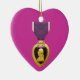 Ornamento de Navidad en el Corazón Púrpura. Este adorno está decorado por un lado con la Medalla Militar Purple Heart de los Estados Unidos y por el otro con Santa Claus y su bolsa de golosinas.