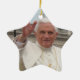 El frente de este adorno navideño con forma de estrella está decorado con Papá Noel y las palabras "Feliz Navidad". La parte trasera está decorada con una fotografía del Papa Benedicto. Una gran idea de regalo.