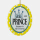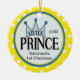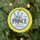 Quiere recordar siempre la primera Navidad de su bebé durante muchos, muchos años por venir. Compra este ornamento para colgar año tras año en tu año. Tiene un centro azul claro con una corona que dice "Pequeño" y la palabra "Príncipe" debajo. Tiene un fondo amarillo brillante con pequeños puntos blancos de polka. Personaliza con un nombre y un año. Echa un vistazo a los muchos otros ornamentos y productos que tenemos. ©Cupakes cuties