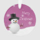 Añade un toque caprichoso a tu árbol de Navidad con un adorno de escenas de invierno rosado. El diseño ornamental incluye a un muñeco de nieve feliz en una escena invernal de nieve con fondo rosa adornado con copos de nieve a color. También hay artículos de regalo y de vacaciones disponibles con este diseño.