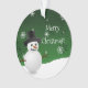 Añade un toque caprichoso a tu árbol de Navidad con un adorno de la escena de invierno de Snowman verde. El diseño ornamental incluye un muñeco de nieve feliz en una escena invernal con un fondo verde adornado con copos de nieve a color. También hay artículos de regalo y de vacaciones disponibles con este diseño.