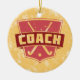 Diseño "COACH" de estilo escudo retro, con palos y pelota de hockey de campo cruzados. Diseño divertido para entrenadores de hockey de campo, y montones de ideas de regalo para el entrenador de tu equipo. Los elementos se pueden personalizar con su propio texto. Fiestas / adorno navideño. Revisa mi tienda para muchos más diseños con un fondo de Navidad genial! Ideal para los árboles navideños de los aficionados al deporte, y excelentes regalos para tu familia y amigos deportivos locos.