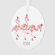 Ornamento de flamencos de Navidades monogramados 2024. La fecha puede cambiarse a otro año.