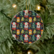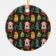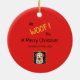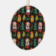 Perros pequeños adorables decoran este maravilloso ornamento navideño en un adorable patrón navideño. El diseño está inspirado en el arte del fauvismo con un toque de arte folclórico. El fondo negro realza los colores festivos. Árboles de Navidad, vegetación y bayas, hojas y otros adornos de las festividades de invierno son parte del patrón. La parte trasera del ornamento está cubierta por un rojo de vacaciones de coordinación. Aquí, los perros le dicen "Te queremos una Feliz Navidad" a tus mascotas queriendo amigos y familiares. Todo el texto, que está en amarillo y negro, se puede cambiar. Asegúrese de editar el nombre y la fecha de la familia de ejemplo.