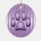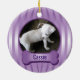 Un hermoso ornamento fotográfico de Navidades de hueso y pata violeta. Este adorno está a rayas y es un lugar para que puedas poner una foto de tu adorable mascota durante las vacaciones.