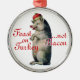Este humorístico ornamento navideño muestra un cerdo con una corona y nos advierte que nos festejemos en pavo, ¡NO en tocino! De un ilustracion vintage. Puede ordenar esta imagen en un ornamento de círculo liso, una forma cardíaca o un cuadrado, según elija.