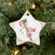 Ornamento de Navidad mostrado en forma de estrella con fondo blanco con una linda huella de ratón santa de vacaciones, el trasero es un color rojo.