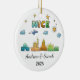 Un recuerdo de viaje personalizado diseñado para celebrar su viaje inolvidable. Ya sea que vayas a trabajar, disfrutes de una escapada romántica, o que participes en un programa de intercambio escolar, este adorno conmemora un momento especial que siempre apreciarás y que quieres recordar en los próximos años. Este vibrante paisaje adornado con paisajes urbanos, nubes de ensueño y estrellas brillantes. ¡Ideal tanto para viajeros como para turistas! Celebra el año que has viajado, ya sea como pareja casada, con familia, o en una aventura en solitario, con nuestro adorno de "Destino de Viajes" muy bien diseñado. Este keepsake personalizado es la adición perfecta a tu árbol de Navidad, sirviendo como un recordatorio duradero de una festividad que apreciarás en los próximos años. Diseño personalizado: Personalizar con su nombre o apellido para crear un conservador verdaderamente único. Regalo perfecto: Una elección significativa e inolvidable para amigos o familiares. Uso versátil: ¡Más que sólo un adorno de árbol! Muestre este hermoso recuerdo en su casa todo el año como un recordatorio duradero de sus vacaciones especiales. Nuestro ornamento de "Destino de Viajes" es más que una decoración. Es un aguijón sincero, que simboliza tu viaje de explorar el mundo. Cada ornamento está diseñado meticulosamente para capturar la alegría y la emoción de sus vacaciones de ese año.
