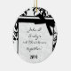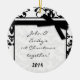 Black Damask Filigree Swirl Impresión Tejido de trama Cinta Bow Personaliza tu ornamento personalizado con tu nombre y el año! ¡Un regalo perfecto para Navidades de cualquier miembro de la familia o amigo!