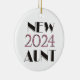 Nueva Tía 2024 fechada con ornamento con texto rosa y negro, un gran regalo para la nueva tía de un bebé nacido en 2024.