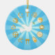 Este elegante ornamento tiene en su centro una radiante paloma de paz, que simboliza la esperanza y la unidad, rodeada por los símbolos dorados de 12 religiones del mundo sobre un llamativo fondo de rayo azul. Los emblemas sagrados de Bahá'í, Budismo, Cristianismo, Confucianismo, Hinduismo, Islam, Jainismo, Judaísmo, Espiritualidad Nativa (Rueda de la Medicina), Shinto, Sijismo y Taoísmo rodean la paloma, representando la diversidad global de creencias espirituales y la armonía que las une (nota: el color del oro no es metálico). Este adorno es un bello tributo a los valores compartidos de paz, amor y entendimiento entre religiones. Perfecto para añadir un toque reflexivo y simbólico a cualquier entorno vacacional, anima la reflexión sobre la búsqueda universal de la armonía.