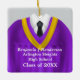 Ornamento personalizado de doble cara para mantener la graduación, decorado con colores de traje y corbata de la escuela morada y dorada para ese hombre especial. Hay muchas otras combinaciones de colores disponibles para hombres y mujeres. Edite texto personalizado delante y atrás en el sencillo editor de texto Zazzle.