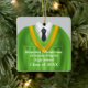 Ornamento personalizado de doble cara para mantener la graduación, decorado con colores de traje y corbata de la escuela verde y dorada para ese hombre especial. Hay muchas otras combinaciones de colores disponibles para hombres y mujeres. Edite texto personalizado delante y atrás en el sencillo editor de texto Zazzle.