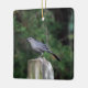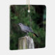 Esta es una foto de un pájaro gris en Pensilvania en un ornamento cerámico.