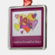 Pintura acuarela de la palabra "amor" con el corazón superpuesto en un patrón de mosaico. La pintura tiene una capa clara de purpurina dorado. Hay otra versión de esta pintura sin purpurina llamada "Love Patchwork Hearts Watercolor". La serie inspiradora de pintura se toma del texto utilizado en las pinturas de ángel. "Elijo conocer el amor" -Mi vida, Mi elección "En mi vida elijo conocer mi amor"- Siente belleza "No puede paralizar el amor" -Lo que el cáncer no puede hacer Estas imágenes están diseñadas para proporcionar reflexión y meditación en una sola palabra. También puede combinarlos para hacer su propia serie de palabras para meditación/ contemplación. Personalice este ornamento con su propio texto e imágenes usando el botón "Personalizar".