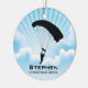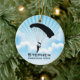 Navidades de Ornamentos Personalizados de Paracaidismo Sky 20XX. Los buceadores forman un círculo de caída libre contra un cielo azul con fondo de nubes. ¡Todo el personalizable de texto, delante y atrás!