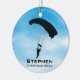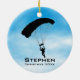 Navidades de Ornamentos Personalizados de Paracaidismo Sky 20XX. Los buceadores forman un círculo de caída libre contra un cielo azul con fondo de nubes. ¡Todo el personalizable de texto, delante y atrás!