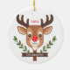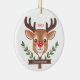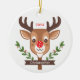 Un adorno personalizado para el canto de la pelota de reno. La cabeza y el cuello de los renos están en forma de remo de pickleball, mientras que su nariz roja se parece a un pickleball rojo. Personaliza con un nombre y un año. Es un regalo perfecto para los amantes del pickleball. © Kimbellished, LLC