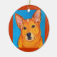 El rojo es un guapo perro de ganado rojo con mucha personalidad (y una asombrosa "inclinación de la cabeza"). "¿Tienes galletas?" Puede cambiar el color de fondo de este adorno.
