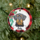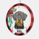 Ornamento rottweiler con fondo de búfalo rojo y Navidades garland and bow - ¡El arte fue pintado a mano y puesto a disposición como este adorable adorno! Añade cualquier texto (sugerido: "❤️ mi corbata" o el nombre de tu querida) visita www.curella.net para ver un retrato personalizado, pegatinas y más.