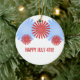 Ornamento divertido de fuegos artificiales Retro con gráficos de fuegos artificiales audaces y únicos en rojo y azul claro. Este bonito adorno le haría un bonito toque de queda o decoración cuando se personalizara con el texto que usted elija.