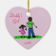 Padre e hija se toman de la mano. La camisa de papá dice "papá" y el vestido de la niña dice "yo". La familia tiene pelo negro y piel oscura. La imagen aparece en varias versiones de la familia étnica. Tampoco hay una versión de dibujo de color. Notas de texto "Papi's Chica", pero se pueden personalizar a los nombres. Actualice el "20XX" al año en curso. Añade tu fotografía personalizada de padre e hija a la parte posterior del adorno. ¡Personaliza el adorno de padre e hija con nombres de familia o un mensaje personal para regalos especiales de padre o padre adorno! ¡Puedes hacer un adorno familiar de personalizado para un regalo especial del Día del Padre, nuevo papá y/o recién nacido, Reunión Familiar u otros regalos de arte familiar personalizados!