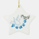 Ornamento personalizado de la paz con una paloma sosteniendo una rama de olivo y la palabra Paz a lo largo del pecho de la paloma con el signo de paz de los años 60.
