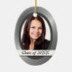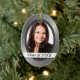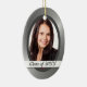 Un lado de este adorno de keepsake presenta la fotografía de tu graduado enmarcada en un atractivo fondo de acero gris de aspecto metálico, que es complementario a la mayoría de los retratos. Un banner blanco en la parte inferior contiene el texto fácilmente personalizado. El otro lado es el gris plateado. Si desea añadir texto, puede hacerlo eligiendo "Personalizar". **Nota: la imagen se imprime en la superficie y el producto no contiene ninguna sustancia metalizado ni metálica.**
