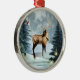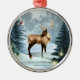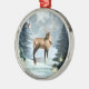 Encantadora película de arte digital de ciervo escena de invierno arte digital adorno de estilo enmarcado de plata. ¡Disponible en diferentes formas! Este adorno de arte plateado tiene un ciervo en una hermosa escena de invierno con farolillos brillantes, velas, tierra cubierta de nieve, árboles, ¡y un amigo cardenal también! Todo ello sobre un bonito fondo luna iluminado, en tonos cálidos, blancos y azules. El arte se muestra dentro de un adorno con marcos plateados. El fondo de la adorno es plata. Cuelga de una bonita cinta de satén roja. Una maravillosa adición a tu colección de adornos, decoración de vacaciones o como un lindo regalo de vacaciones para la familia y amigos. Para más decoración de arte digital de vacaciones en casa, tarjetas de felicitación y otros artículos de regalo maravillosos, por favor visite nuestra tienda!
