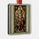Un hermoso adorno de estilo enmarcado de platería de arte digital St. Patrick. Este adorable adorno cuenta con una maravillosa vidriera de estilo digital de San Patricio sobre fondo verde dentro de un marco cuadrado plateado y colgado de una cinta roja. Un maravilloso regalo religioso para amigos y familia. Por favor visite nuestra tienda para más religiosos, santos patrones, y ornamentos de arte digital, regalos y tarjetas de felicitación.