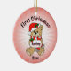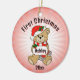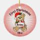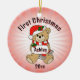 Un dulce oso de peluche sobre un fondo rojo de estallido con nombre de personalizable y fecha delante y atrás. También se puede cambiar el tipo de letra y el color del texto.