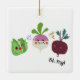 El ornamento cuadrado tiene "la culpa de todo en mis raíces" por un lado y la lechuga y los nabos y las remolachas "¡Oh mi!" Del otro lado. Diseños de Rhonda Stewart.