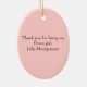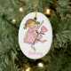Adorable manera de agradecerle, a su chica floral, con este adorno de cerámica ovalada. Obra artística de campo primitiva de una niña que sostiene un gran tulipán rosado. Personalice agregando el nombre de su chica de flores en la parte inferior y un mensaje de agradecimiento en la parte posterior. Un regalo que apreciará en los años venideros.
