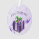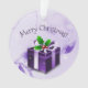 Añade un toque caprichoso a tu árbol de Navidad con un ornamento de regalo de Navidades morados. El diseño ornamental presenta un vibrante regalo de Navidades morados adornado con bayas y copos de nieve cayendo contra un elegante desplazamiento y hojas de fondo. También hay artículos de regalo y de vacaciones disponibles con este diseño.