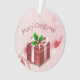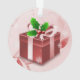 Añade un toque caprichoso a tu árbol de Navidad con un adorno de regalo de Navidades rojos. El diseño ornamental presenta un vibrante regalo de Navidades rojos adornado con bayas huecas y copos de nieve cayendo contra un elegante desplazamiento y hojas de fondo. También hay artículos de regalo y de vacaciones disponibles con este diseño.