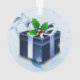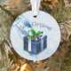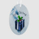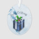 Añade un toque caprichoso a tu árbol de Navidad con un adorno de regalo de Navidades azules. El diseño ornamental presenta un vibrante regalo de Navidades azules adornado con bayas huecas y copos de nieve cayendo contra un elegante desplazamiento y hojas de fondo. También hay artículos de regalo y de vacaciones disponibles con este diseño.