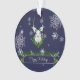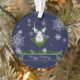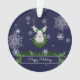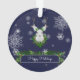 Decore su árbol en esta temporada de vacaciones con un adorno de renos azules. El diseño ornamental incluye un reno festivo con una corona de Navidades adornada con bayas y copos de nieve que caen y una caja de saludo de vacaciones decorada con guirnaldas de vacaciones. También hay artículos de regalo y de vacaciones disponibles con este diseño.