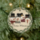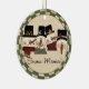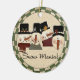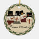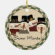 Cuatro hombres de nieve y texto que dice "¡Manía de la nieve!" en un adorno de fiestas de porcelana redondeada de aguijón ¡seguro que te encantarán por los años venideros!